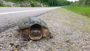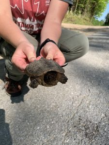 Ontario turtles are capable of long distance travel over land, and some individuals have very large home ranges with nesting sites far from the wetlands they use during the summer months, which can be separate and further still from the wetland they might use for their overwintering (Pettit et al. 1995, Brown and Brooks 2004). For example, Snapping Turtles in Algonquin Park have been found to travel up to 3.9 km between August and late September when they head back to their overwintering grounds, and can return within 1 m of the exact spot they hibernated the year before (Brown and Brooks 2004). What amazing proof of these superb navigators in action! This helps put into perspective the turtle you might find heading into a forest away from a perfectly good wetland – this turtle could be travelling to another wetland you can’t see via this forest, or potentially their nesting site is a sandy bank along a small creek on the other side of the forest. Who knows? We don’t, but the turtle definitely does.