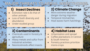 There are several threats to aerial insectivores, including: